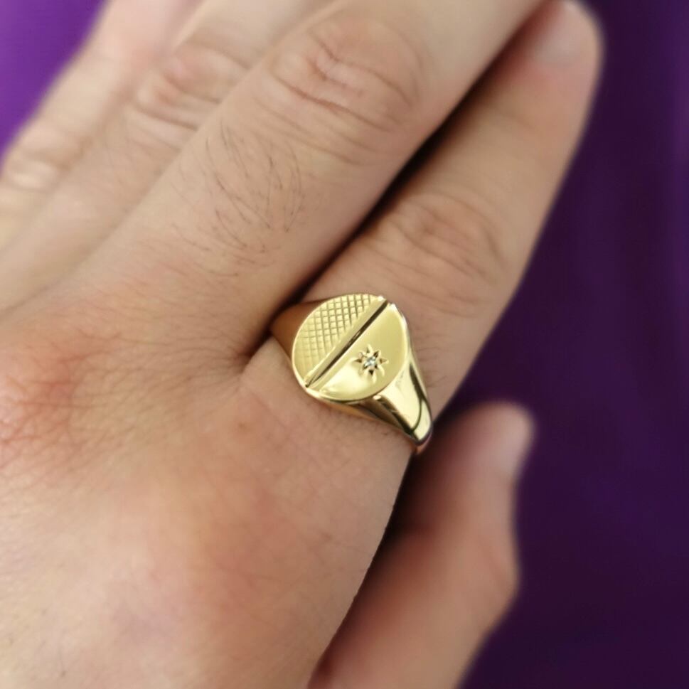 TV-14 Birmingham / 1984年 9ct Gold Vintage Signet Ring × Diamond