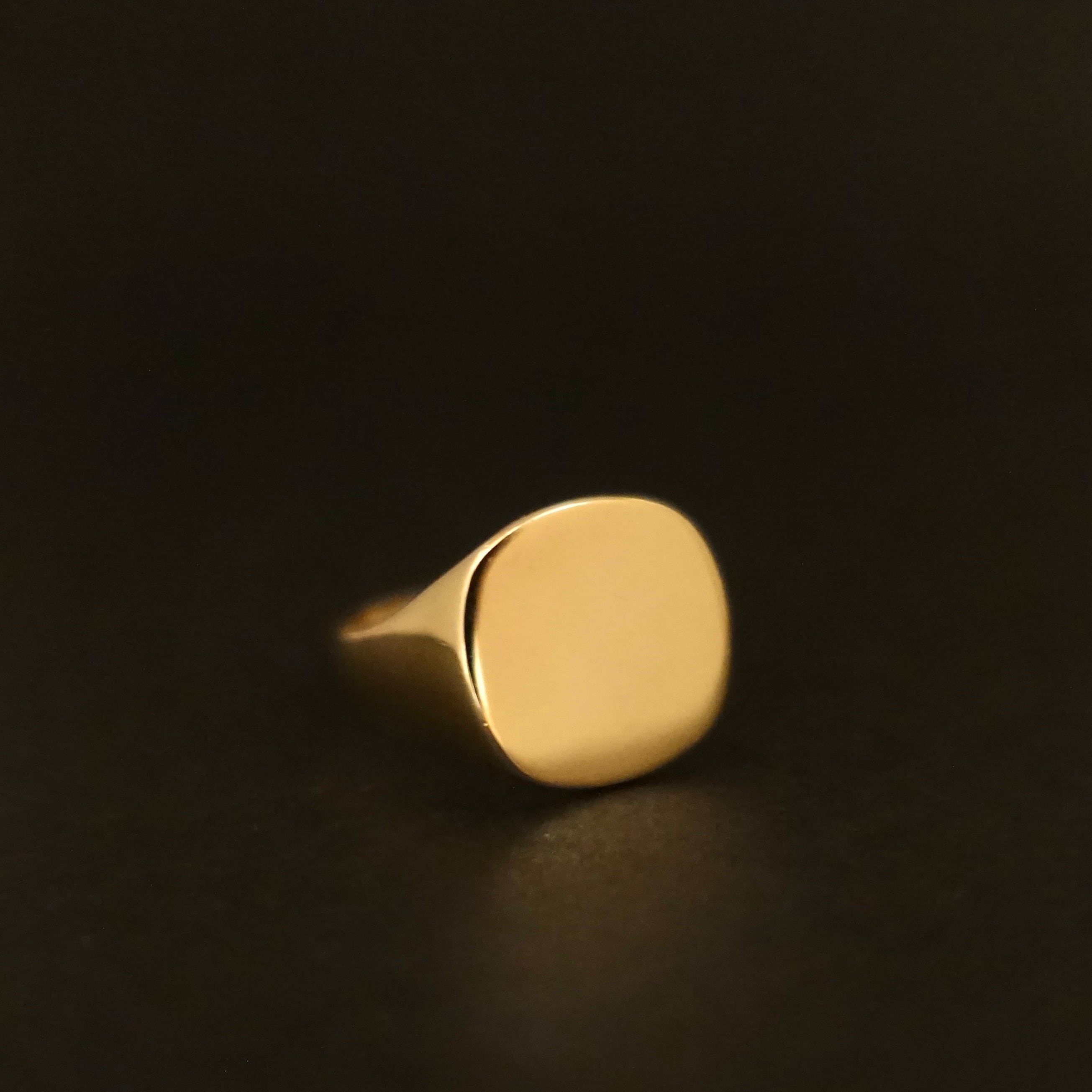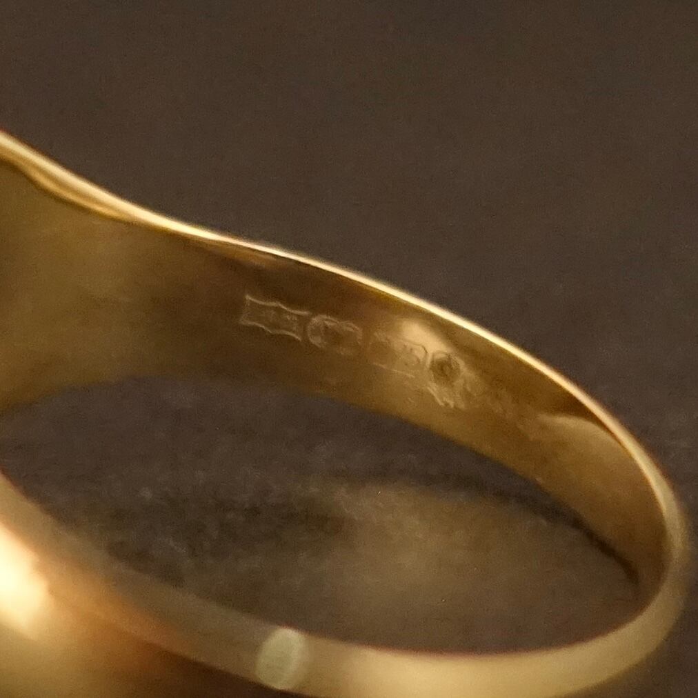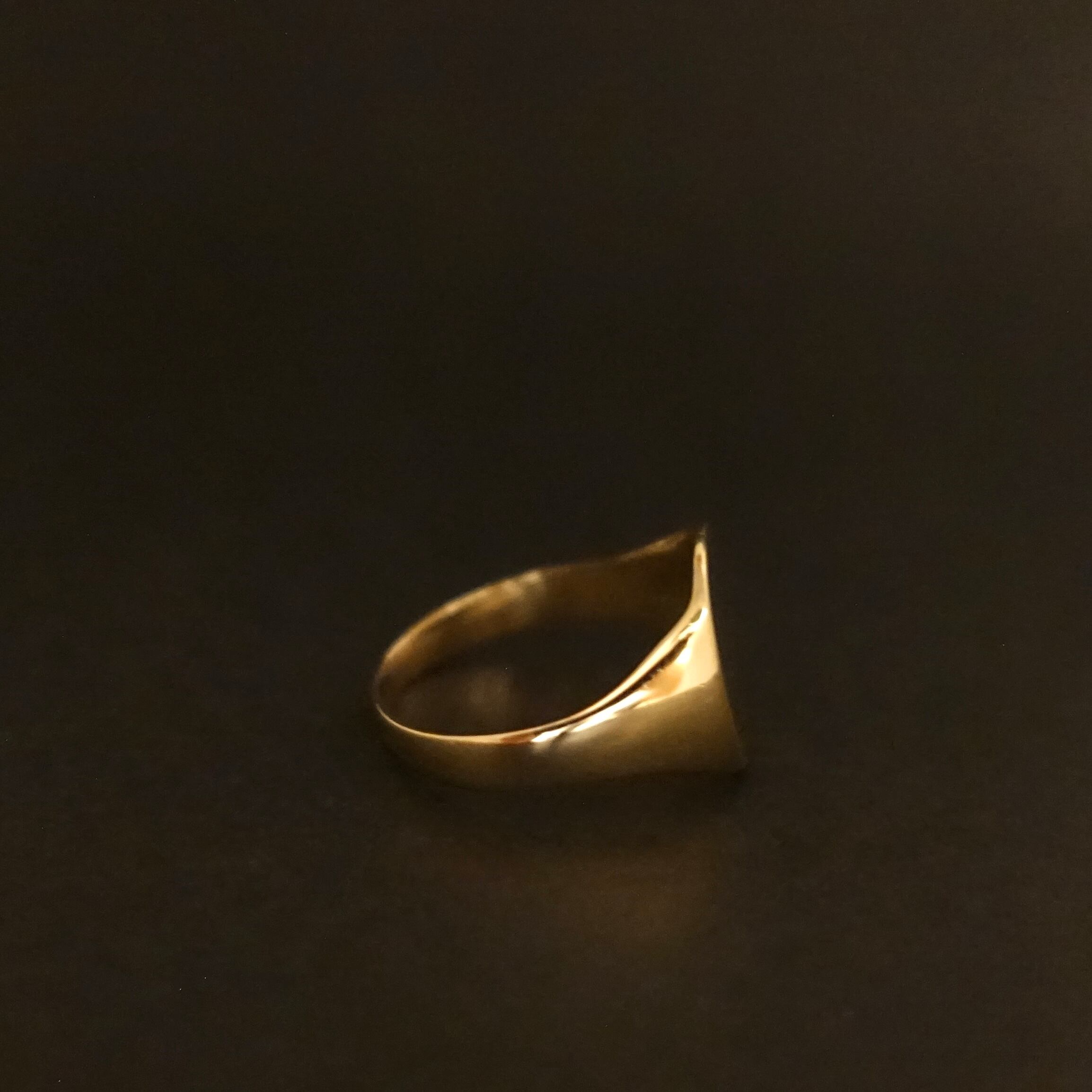 9ctゴールドの上品な色合いが際立つシンプルな印台のシグネットリング。