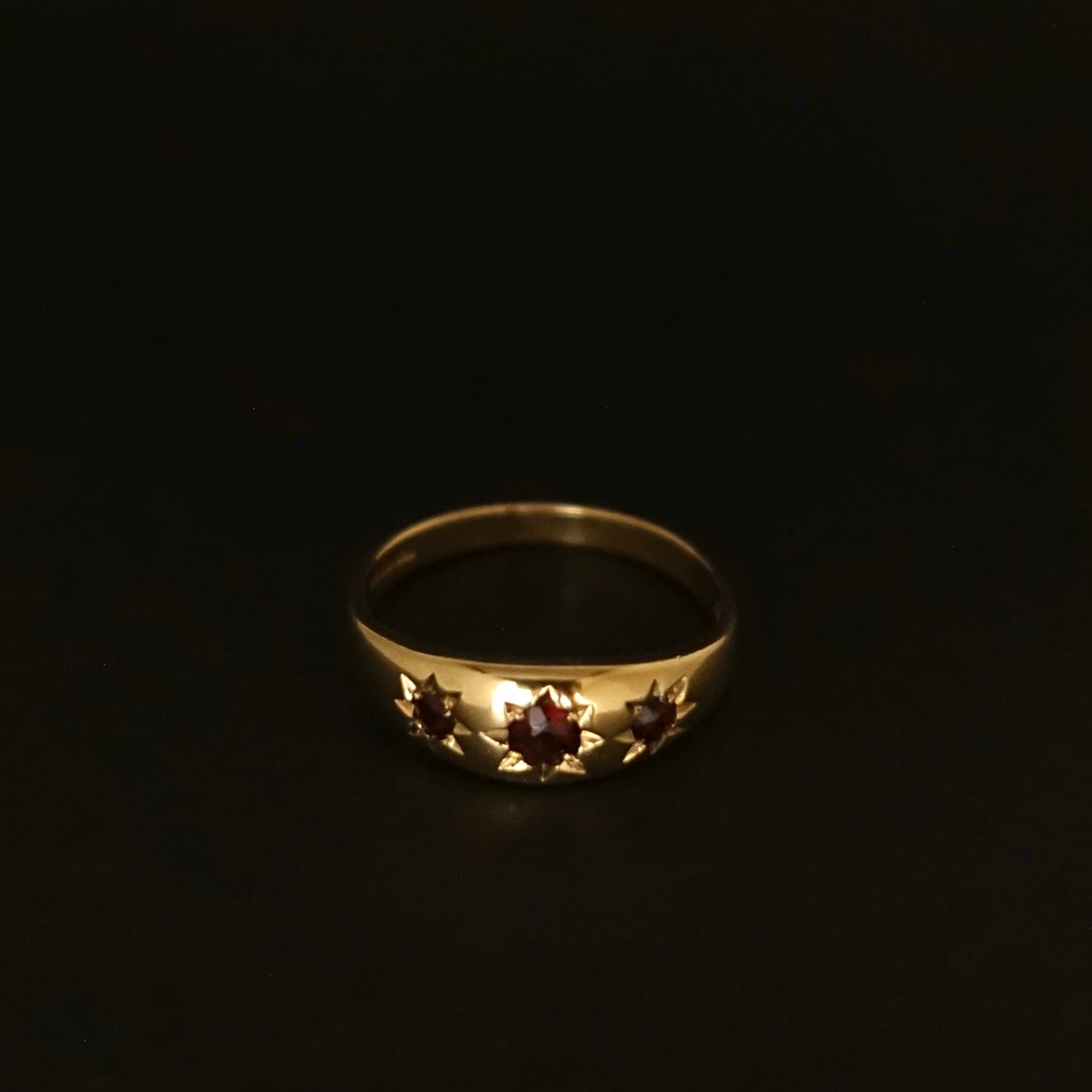 美しい9ctゴールドにガーネットをあしらったジプシーリング。